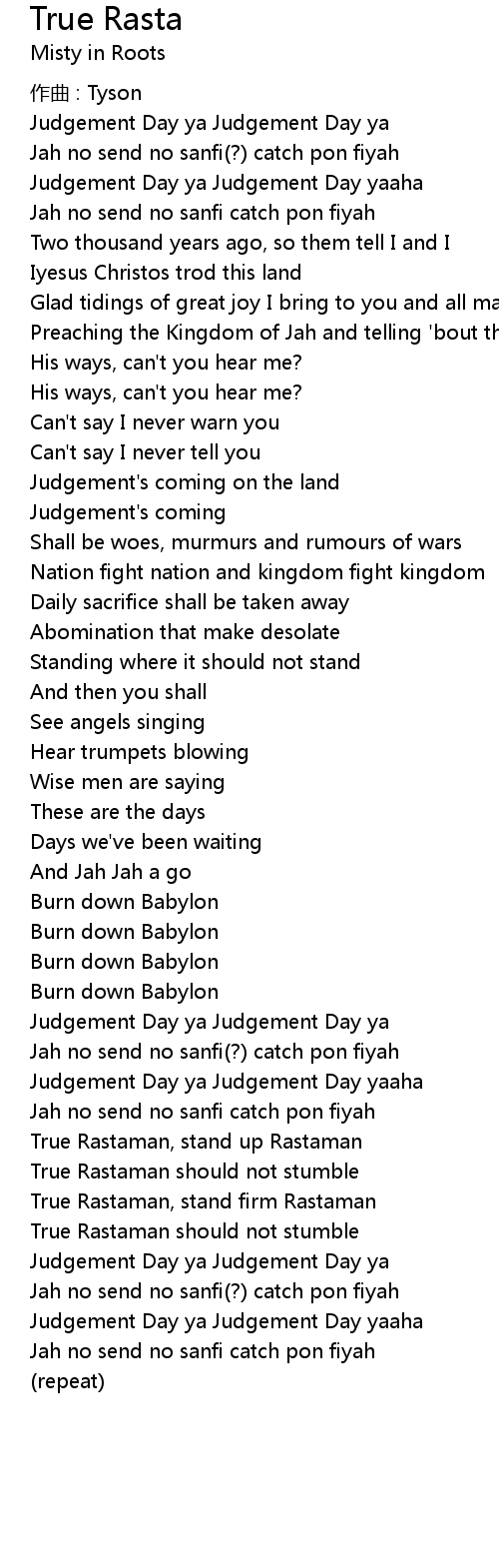 | Jah no send no sanfi(?) catch pon fiyah | |
