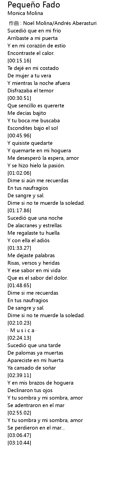 | [00:00.000] | 作曲 : Noel Molina/Andrés Aberasturi |