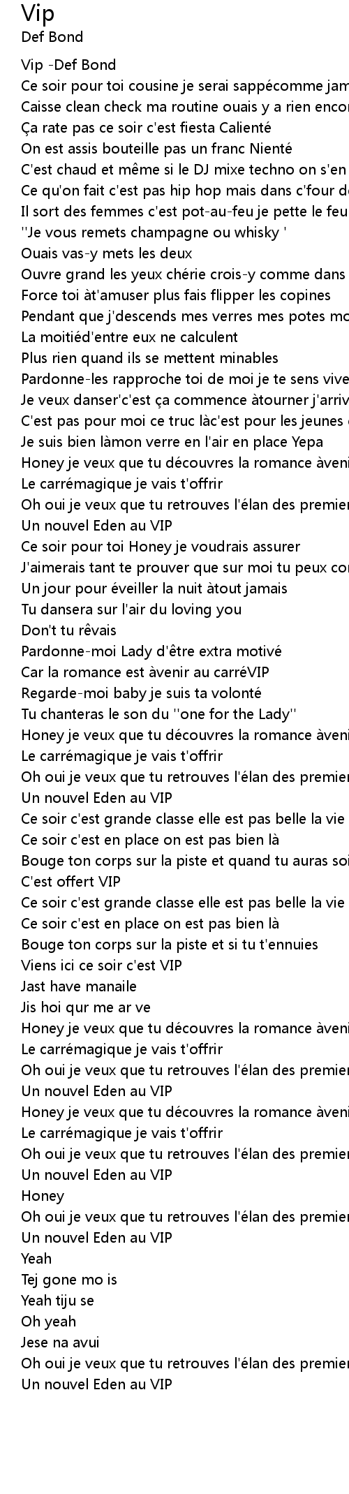 | [02:35.717] | Viens ici ce soir c' est VIP |