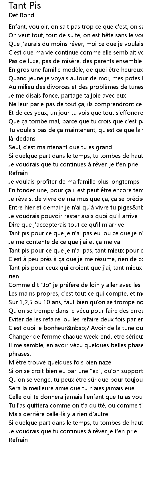| Tant pis pour ceux qui croient que j' ai, tant mieux pour ceux qui ne croient rien | |