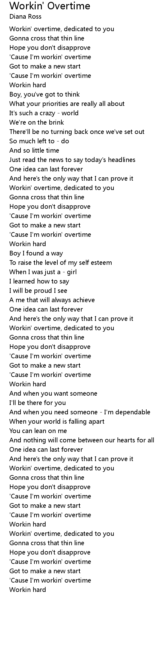 Workin' overtime, dedicated to you |