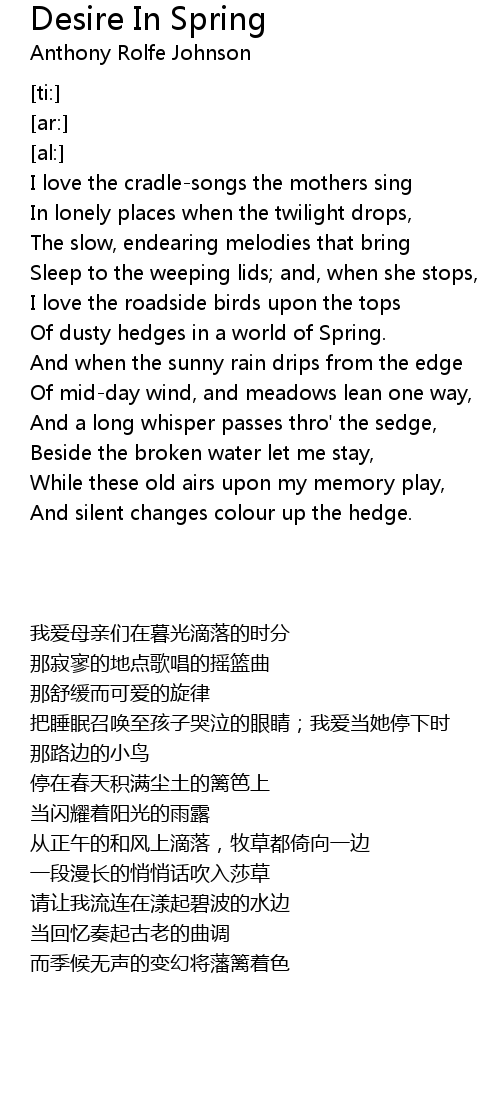 Of dusty hedges in a world of Spring. |