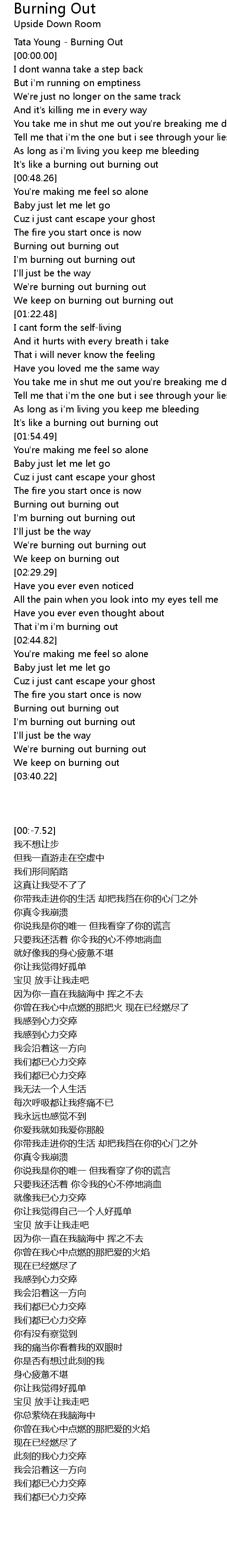 I'm burning out burning out |