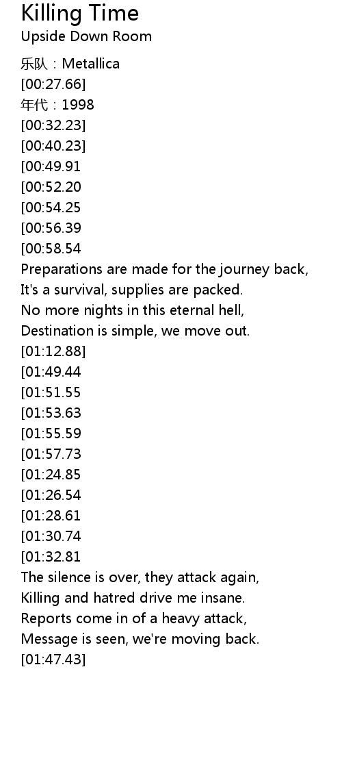 | [02:46.31][01:49.44][01:14.74] | Killing time - You left from the line |