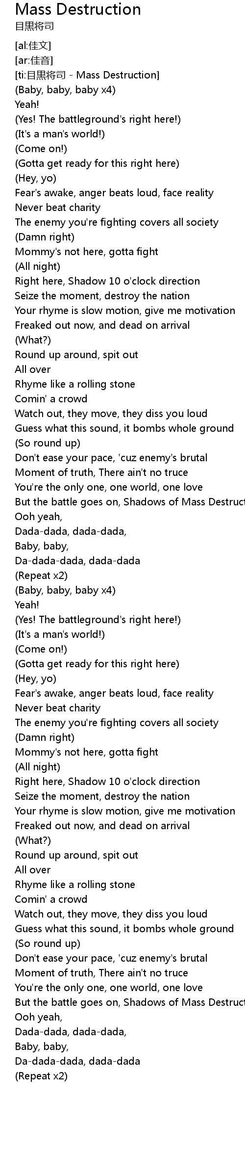 | [ti:目黒将司 - Mass Destruction] | |