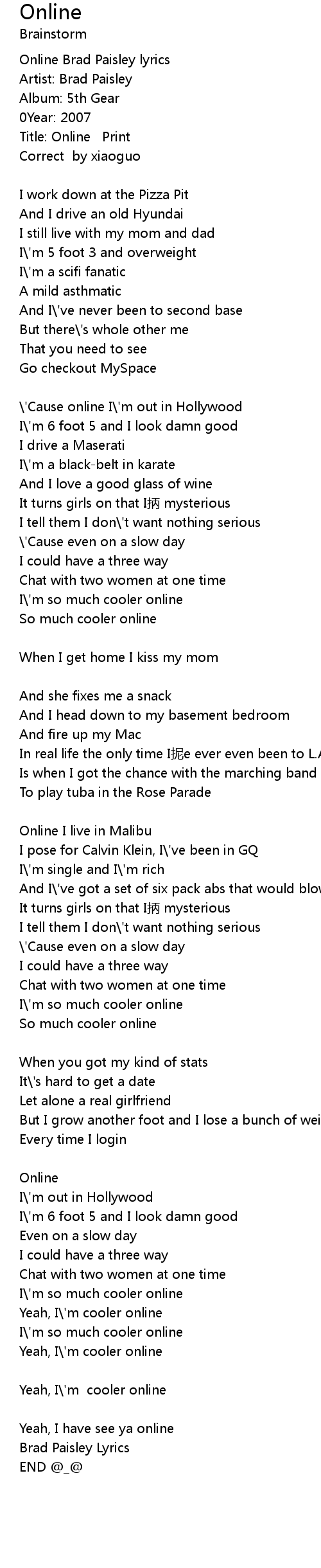 | Online Brad Paisley lyrics | |