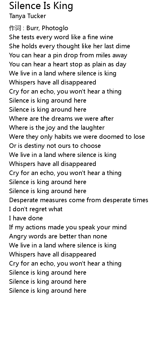| We live in a land where silence is king | |