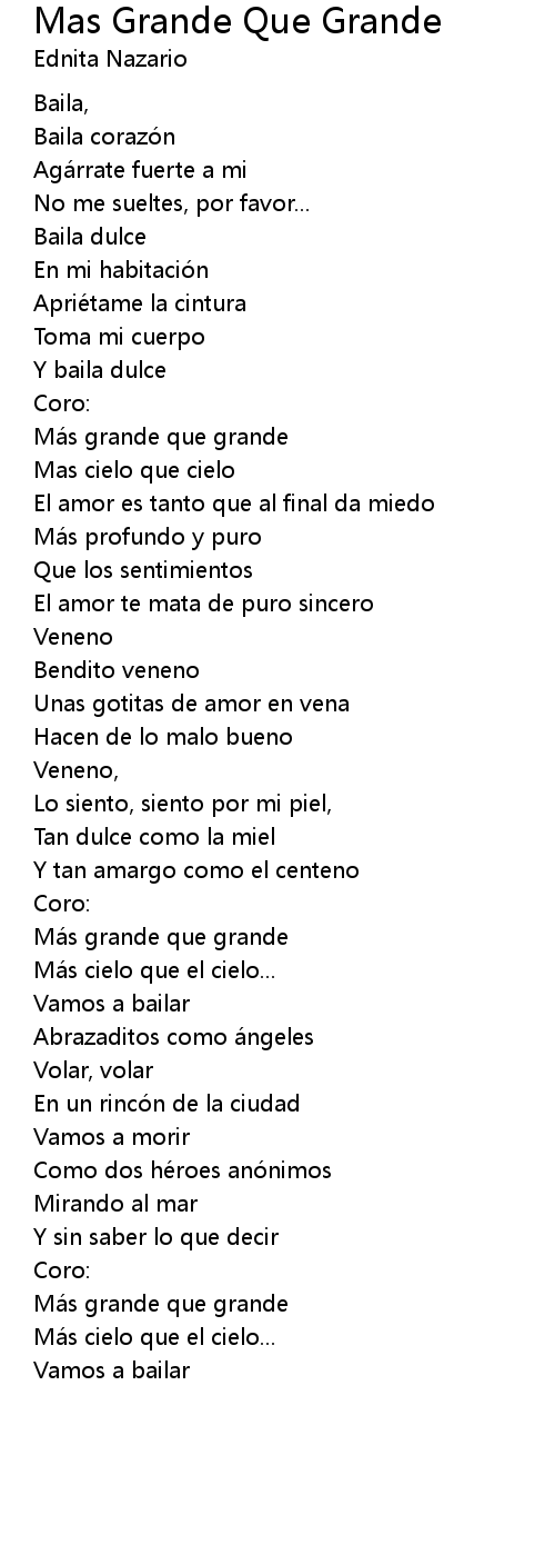 | Song | Mas Grande Que Grande |