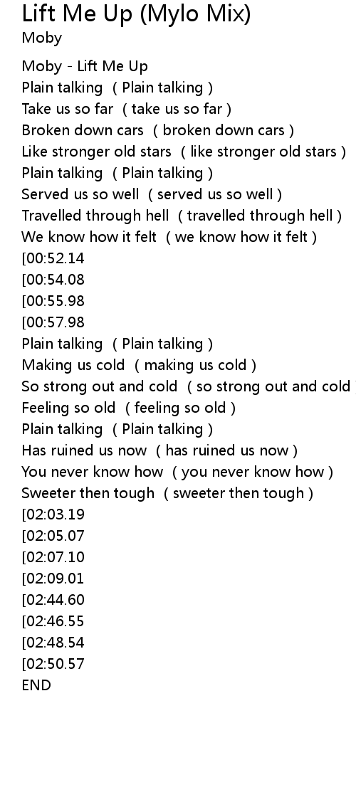 | [00:00.00] | Moby Lift Me Up |