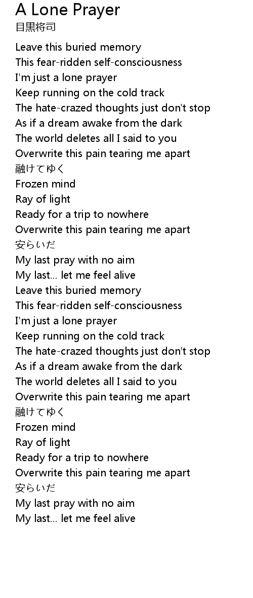 | [01:24.33] | Overwrite this pain tearing me apart |