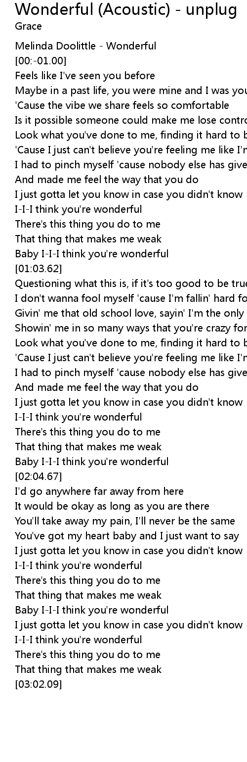 | [02:41.62] | Baby I-I-I think you're wonderful |