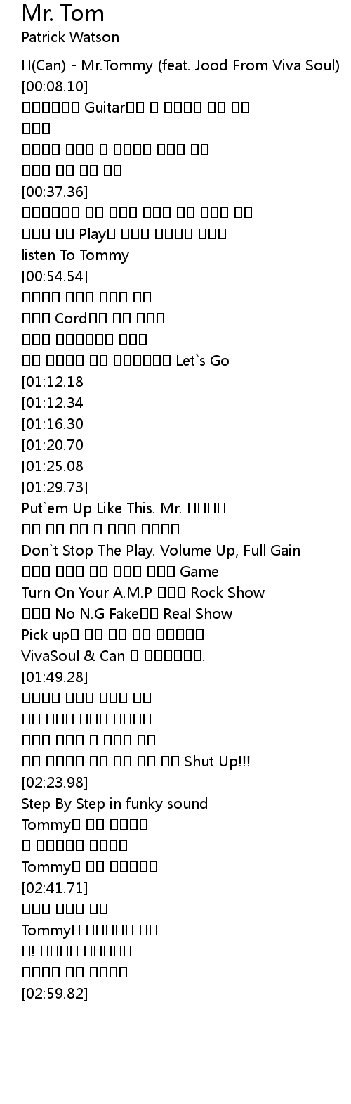 | [00:01.12] | 캔(Can) - Mr.Tommy (feat. Jood From Viva Soul) |