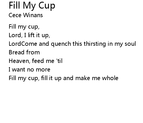 Fill my cup, fill it up and make me whole