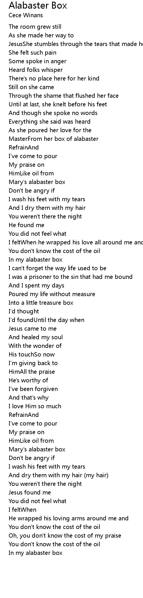 In my alabaster box |