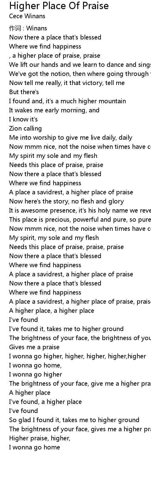| A place a savidrest, a higher place of praise, praise, praise | |