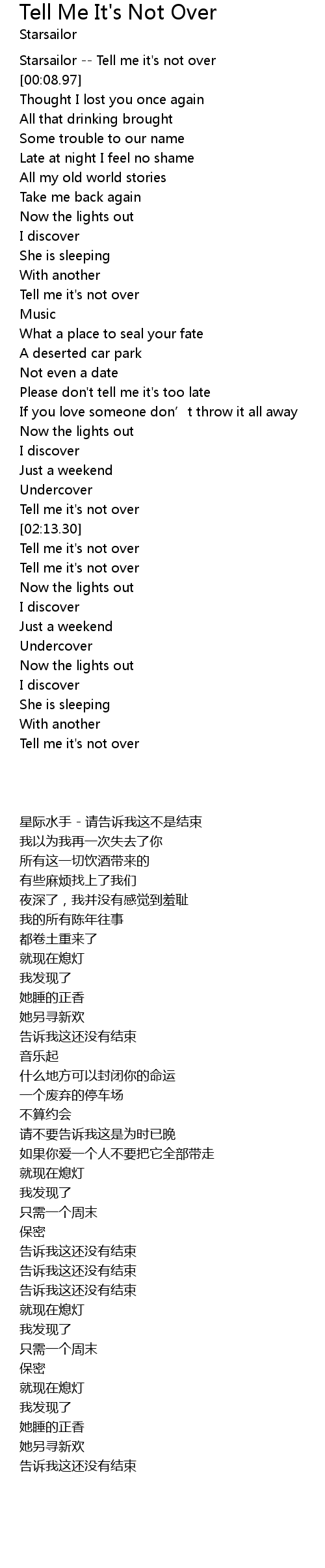 | [00:01.11] | Starsailor Tell me it' s not over |