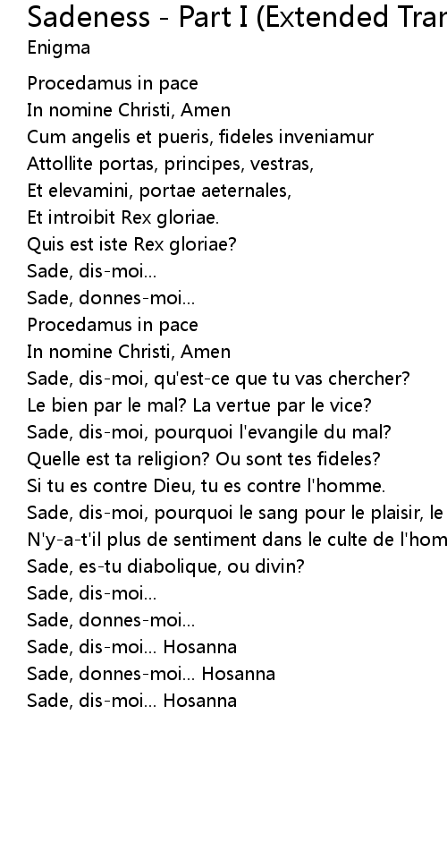 Sade, dis-moi... Hosanna |