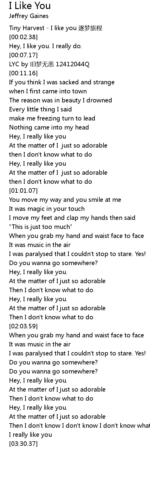 | [00:48.95] | Hey, I really like you |