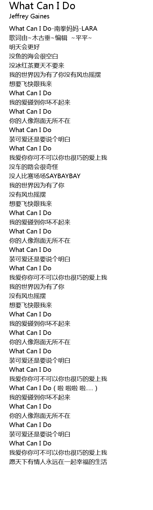 | [00:00.00] | What Can I Do-南拳妈妈-LARA |
