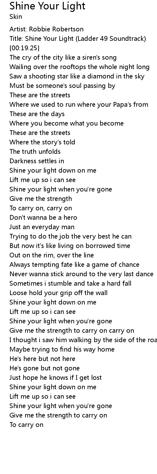 | [00:17.12] | Title: Shine Your Light (Ladder 49 Soundtrack) |