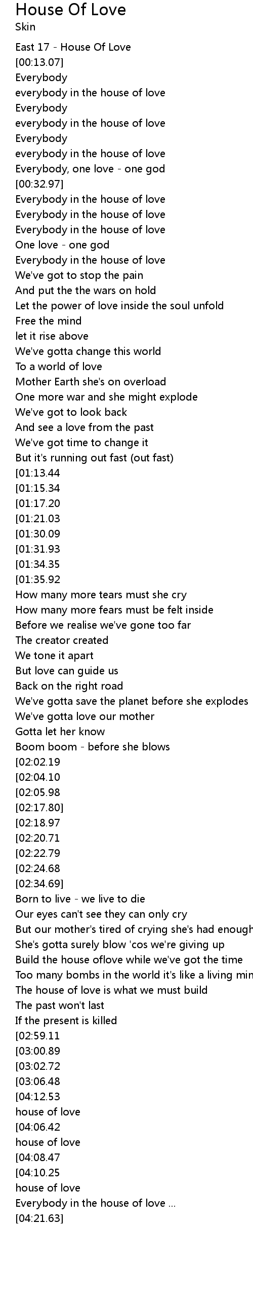 | [00:55.31] | Everybody in the house of love |