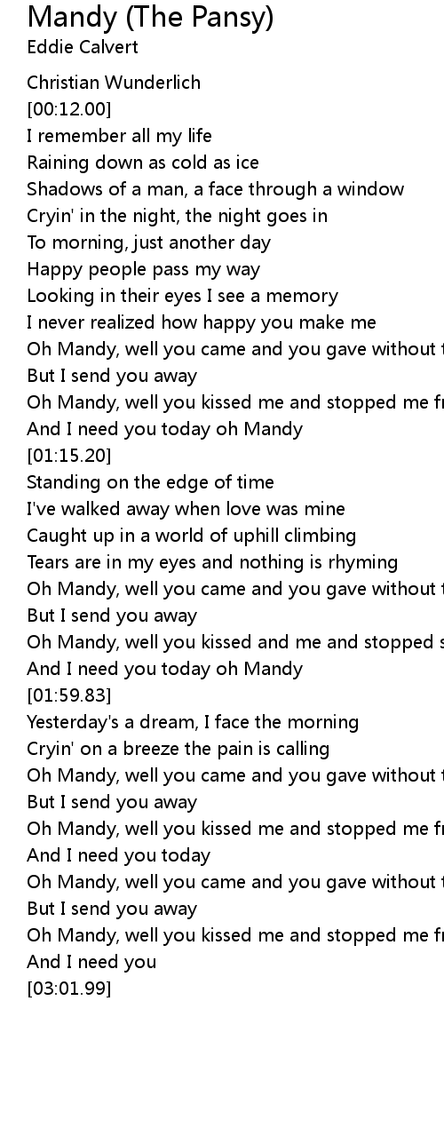 Oh Mandy, well you kissed me and stopped me from shaking |