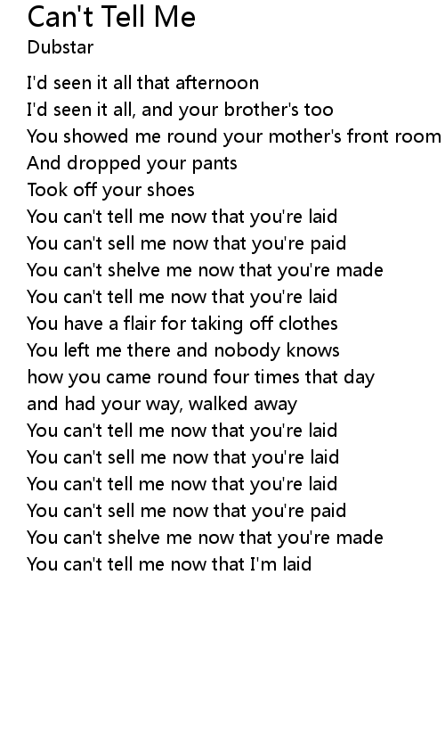You can't tell me now that you're laid |