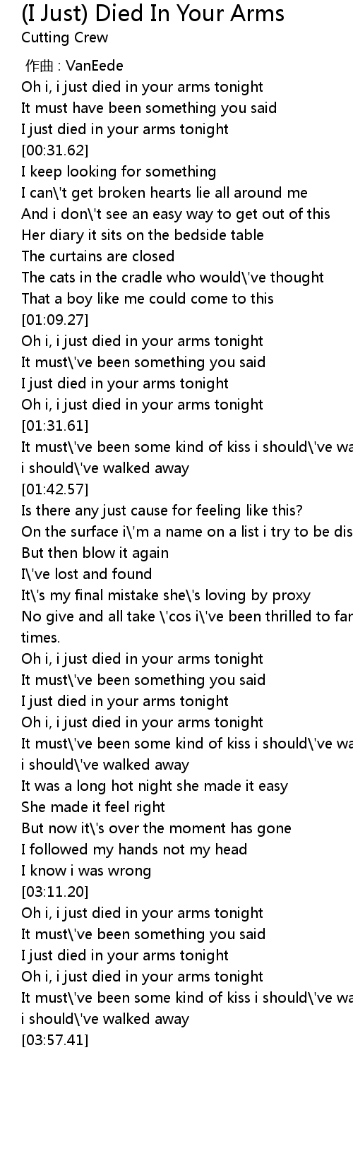 | [03:25.71] | Oh i, i just died in your arms tonight |
