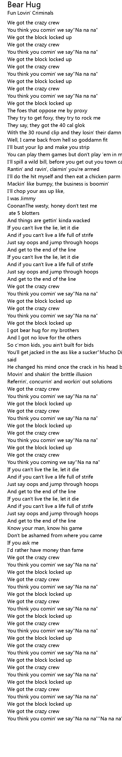 You think you comin' we say"Na na na""Na na na" |
