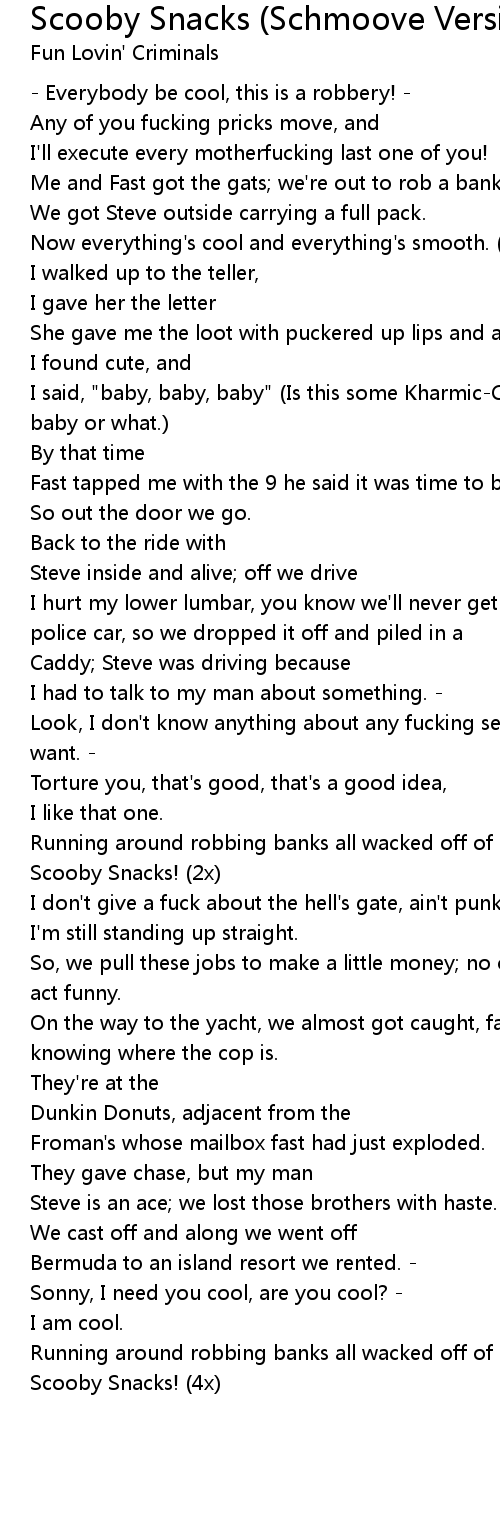I hurt my lower lumbar, you know we'll never get far, riding around in a stolen police car, so we dropped it off and piled in a |