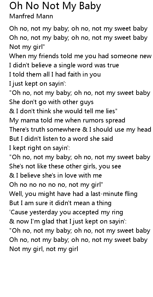 Oh no, not my baby; oh no, not my sweet baby |