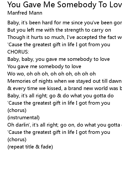 Baby, baby, you gave me somebody to love |
