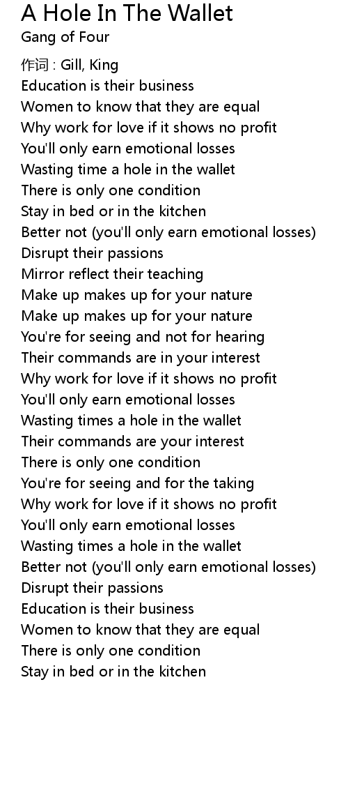 | Song | A Hole In The Wallet |