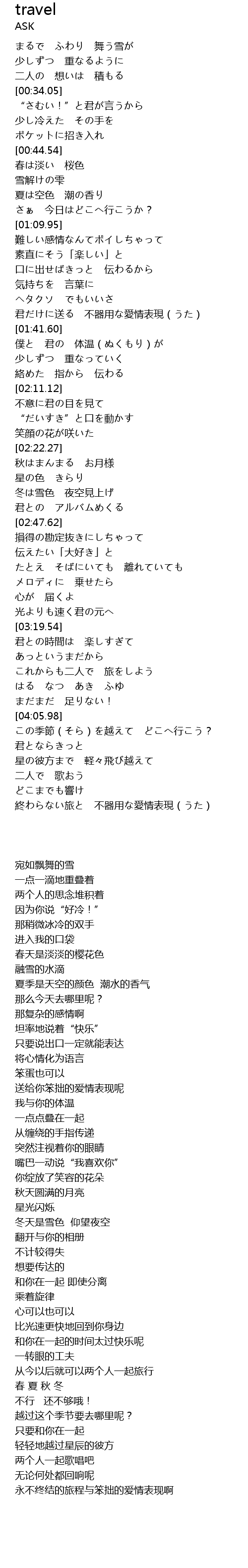 | [03:54.83] | これからも二人で 旅をしよう |