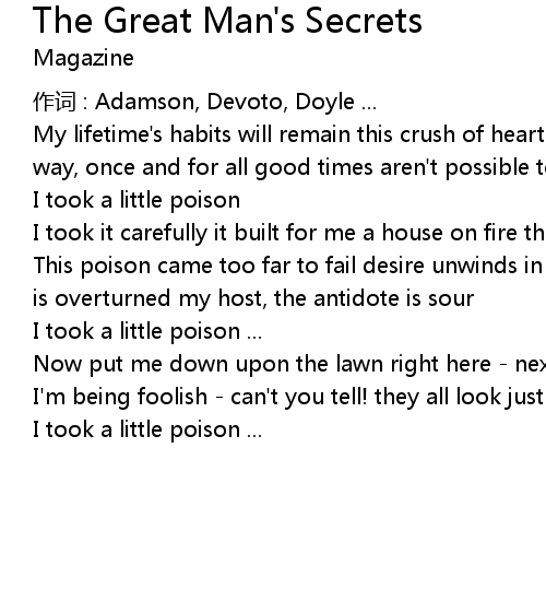 | 作词 : Adamson, Devoto, Doyle ... | |