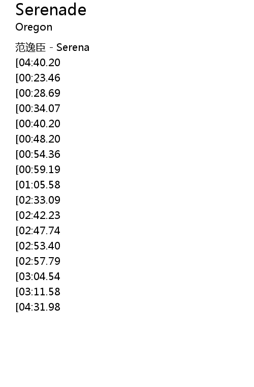 | [04:08.00][02:57.79] | Serena 我用幸福交换你的礼物 是孤独 |