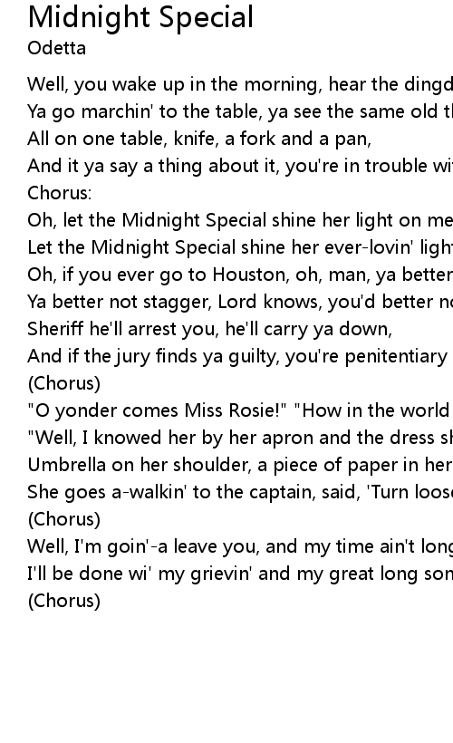 Let the Midnight Special shine her ever-lovin' light on me. |