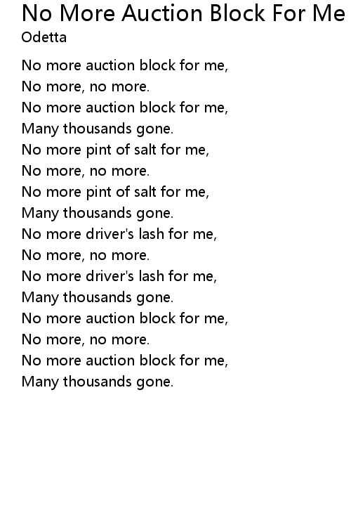 | No more auction block for me, | |