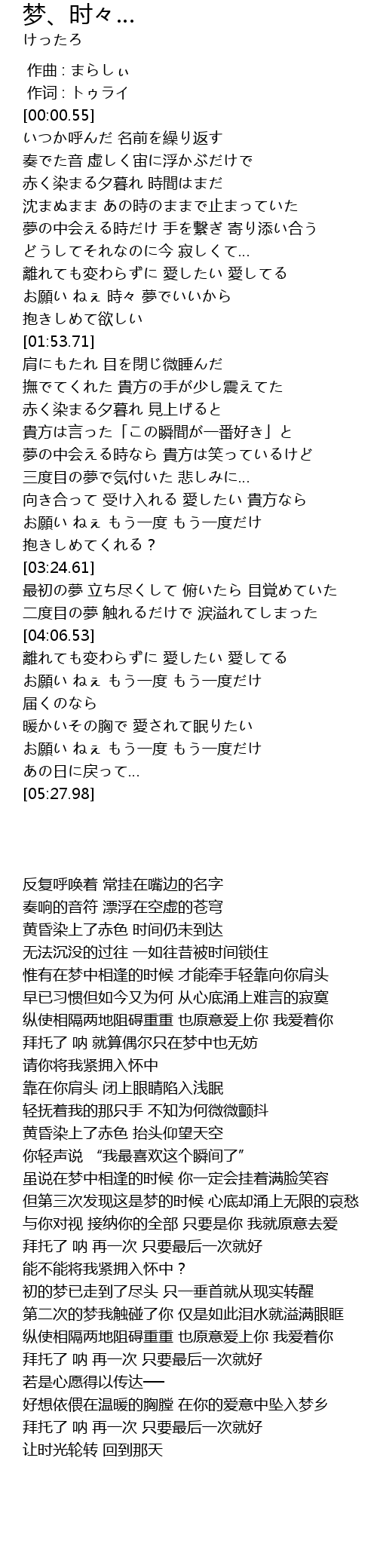 | [01:39.50] | お願い ねぇ 時々 夢でいいから |