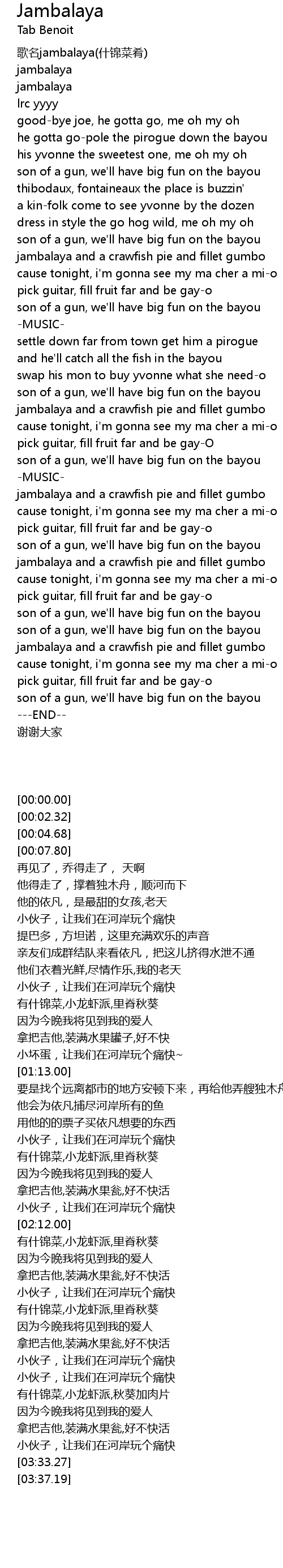 | [00:00.00] | 歌名jambalaya(什锦菜肴) |