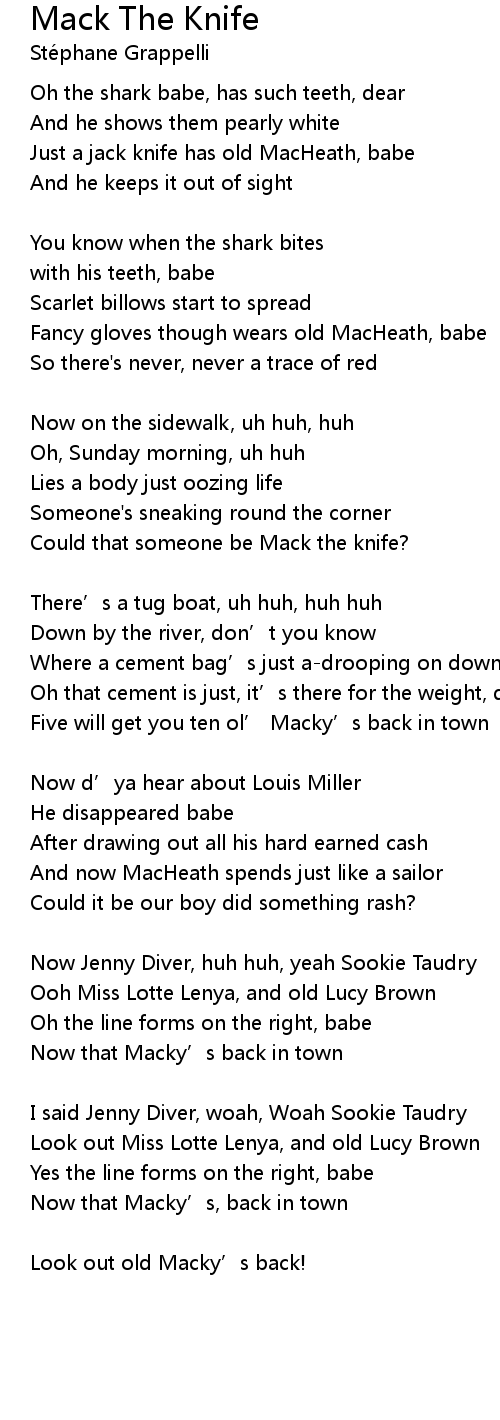 | Just a jack knife has old MacHeath, babe | |