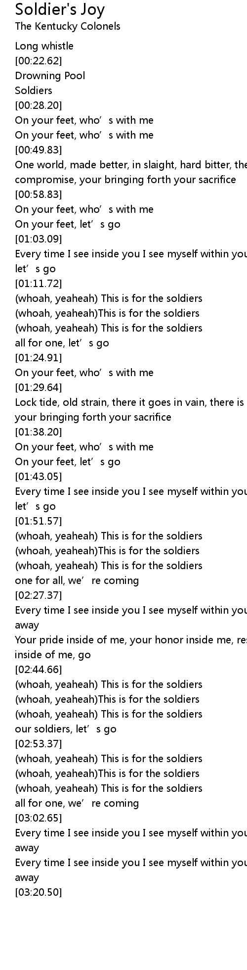 | [02:44.92] | whoah, yeaheah This is for the soldiers |