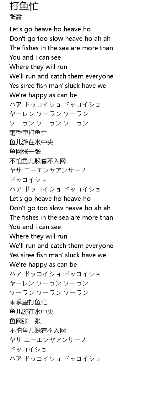 | [01:14.31] | Don' t go too slow heave ho ah ah |