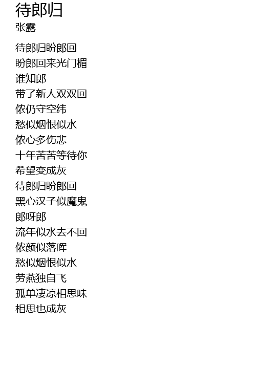 | Song | 待郎归 |