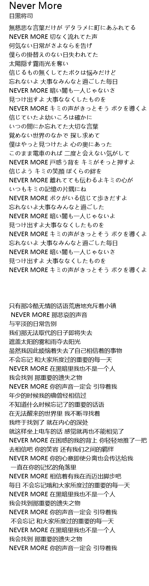 | [00:10.93] | NEVER MORE 切なく流れてた声 |