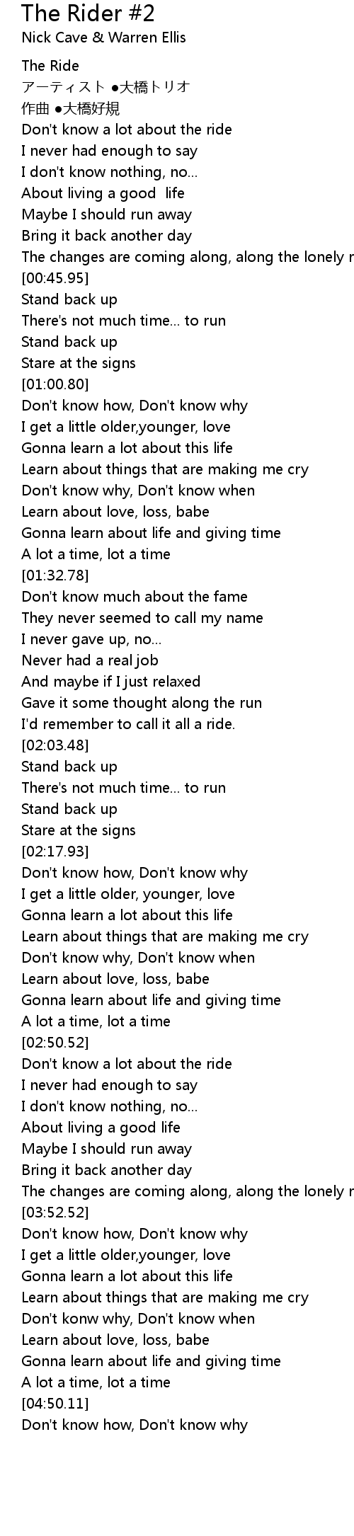 | [03:46.12] | The changes are coming along, along the lonely road |