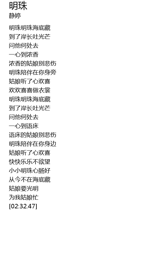 | [00:00.88] | míng zhū míng zhū hǎi dǐ cáng |