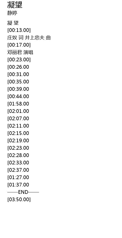 | [02:39.00][01:27.00] | 邓丽君:《凝望》 |