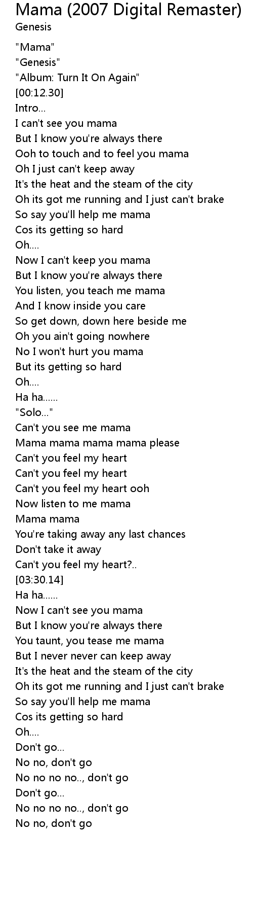 | [00:46.21] | Ooh to touch and to feel you mama |