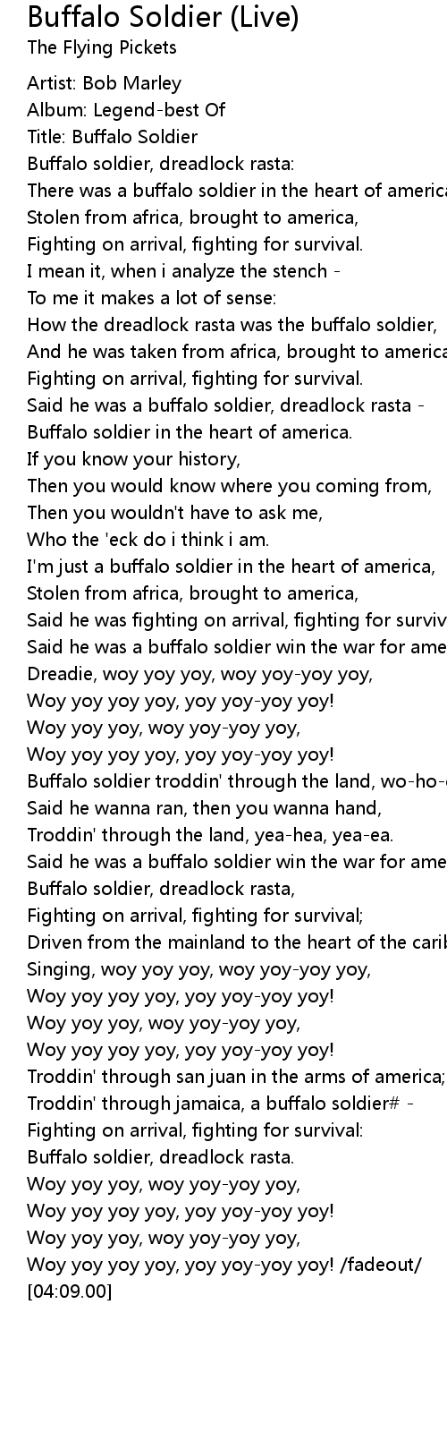 Said he was a buffalo soldier, dreadlock rasta - |